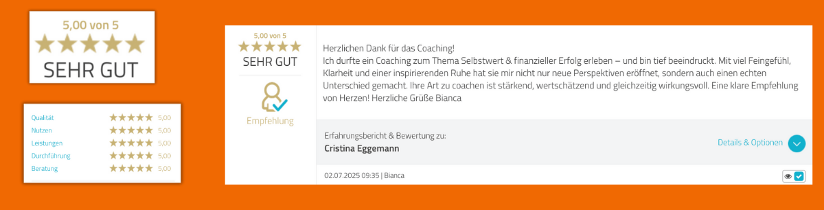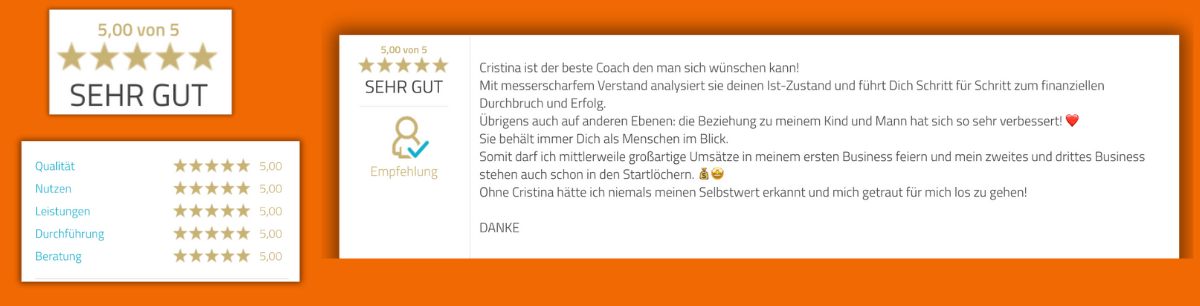 Du erhältst einen exklusiven Einblick in meine persönliche Transformation – von Filialleiterin zur 7-stelligen Unternehmerin und wie du auch diesen Weg für dich nutzen kannst, als Abkürzung für deine verlässliche